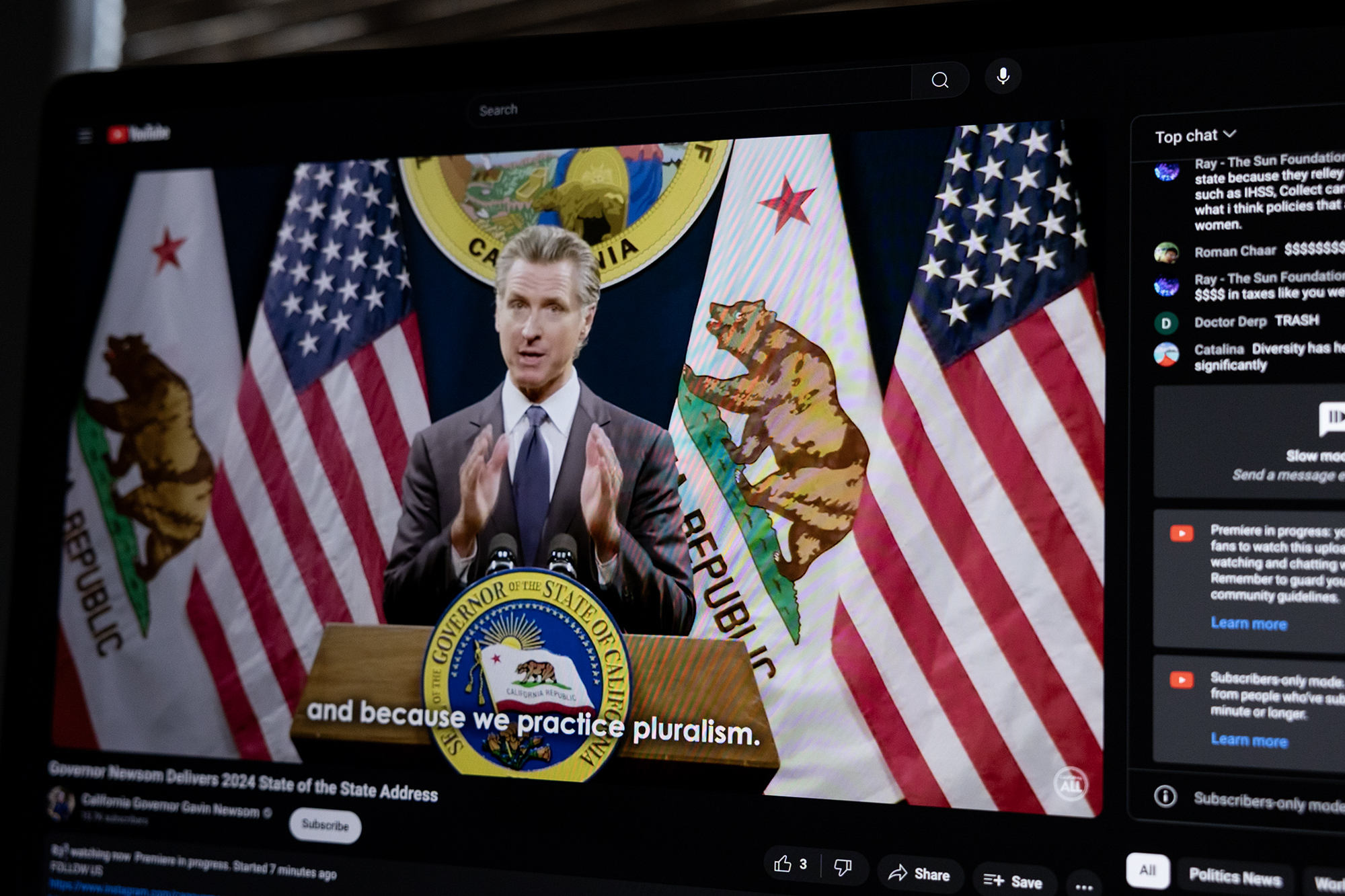 Gov. Gavin Newsom delivers a pre-recorded State of the State address via YouTube on June 25, 2024. Photo by Miguel Gutierrez Jr., CalMatters