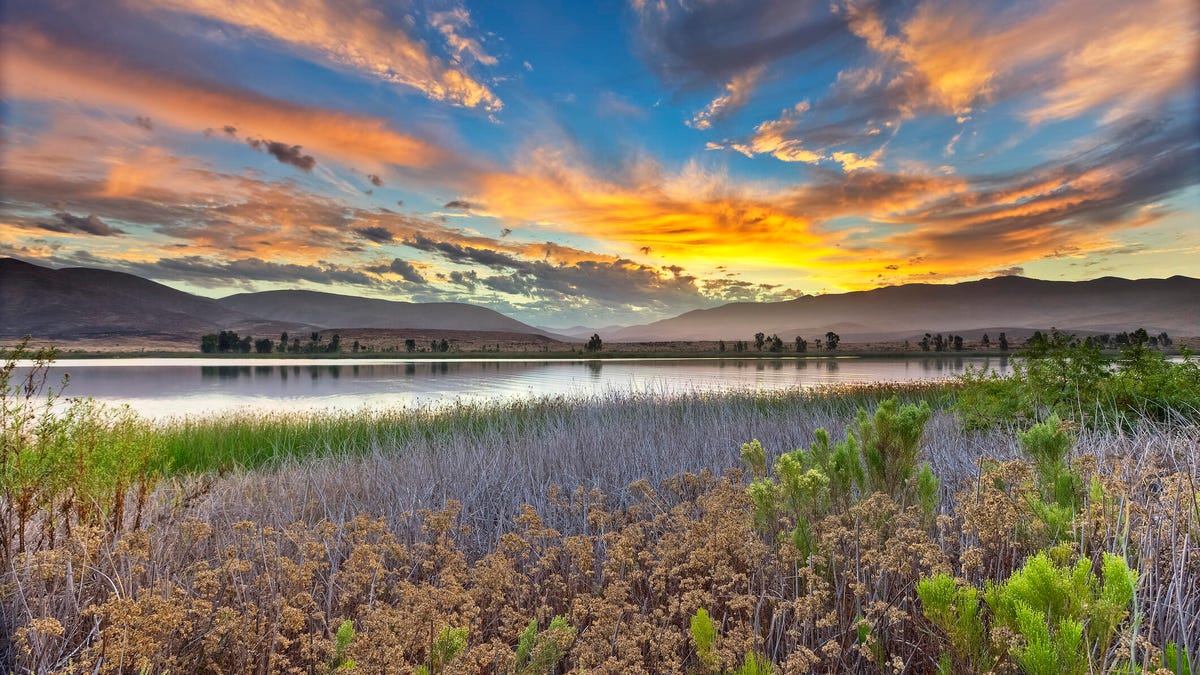 The sunrise is over the Ottay lakes in Chola Vista, California.