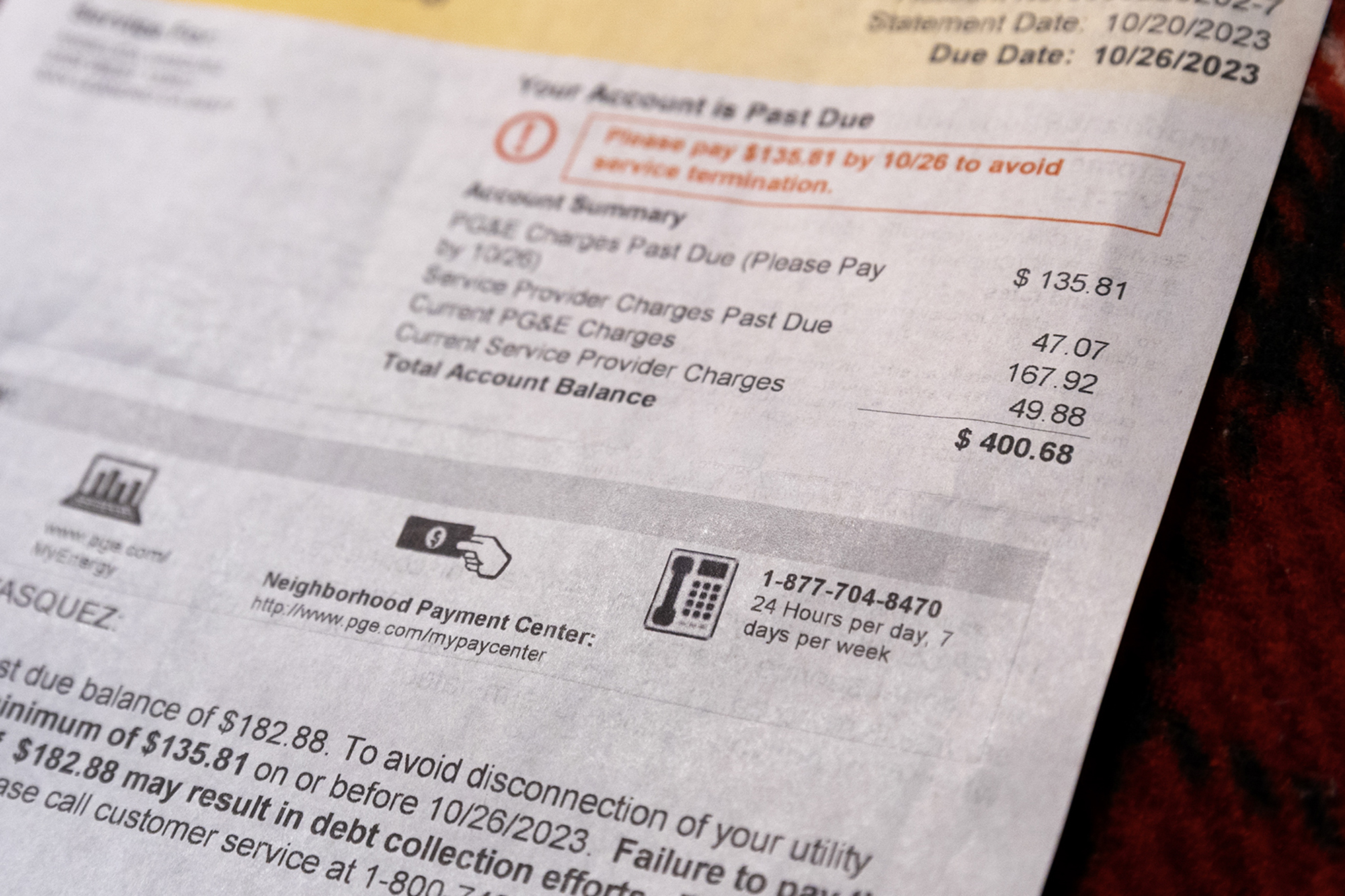 PG & E bill on November 10, 2023. Photo by Manuel Orbes for CalMatters