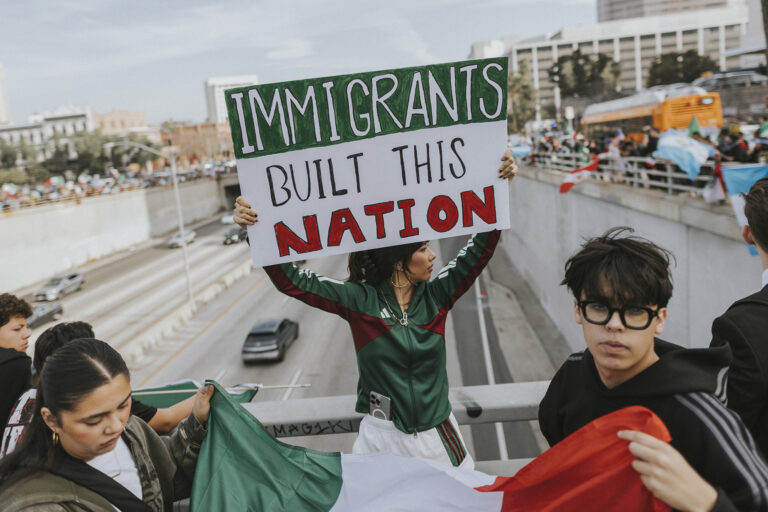 Protesters gather over the 101 highway in the center of Los Angeles in support of March “The Day Without Immigrants” on February 3, 2025. Photo from JW Hendricks for Calmatters As immigration raids continue to rattle California small business., farms…