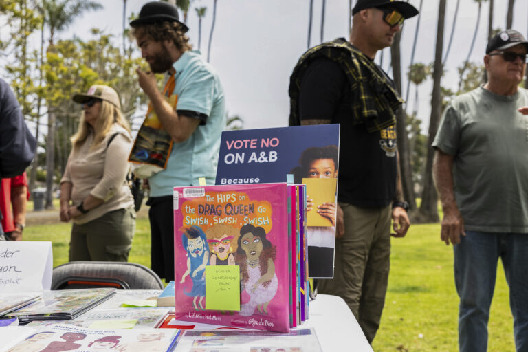 From Alexey KossefCalmness Opponents of A and B Display Book Book Measures They want to be removed from the library’s children’s section during an event at Lake Park at Huntington Beach on May 31, 2025. Photo from Mette Lampcov for…