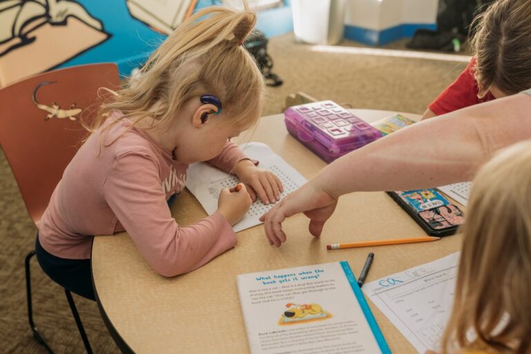 A toddler wearing hearing aids works on schoolwork at the Roseville Public Library in Roseville on October 12, 2023. Photo by Jyotsana Bhamidipati for CalMatters California is home to nearly 1 million children with physical, developmental, or cognitive disabilities—most of…