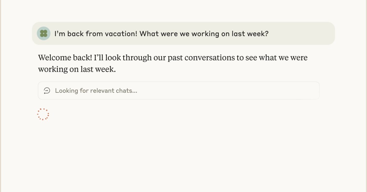 in YouTube videoThe company showed a user asking what they were talking about with Claude before their vacation. Claude is looking at the past chats to read and summarize the user, then asks whether they want to go forward and continue working on the same project.