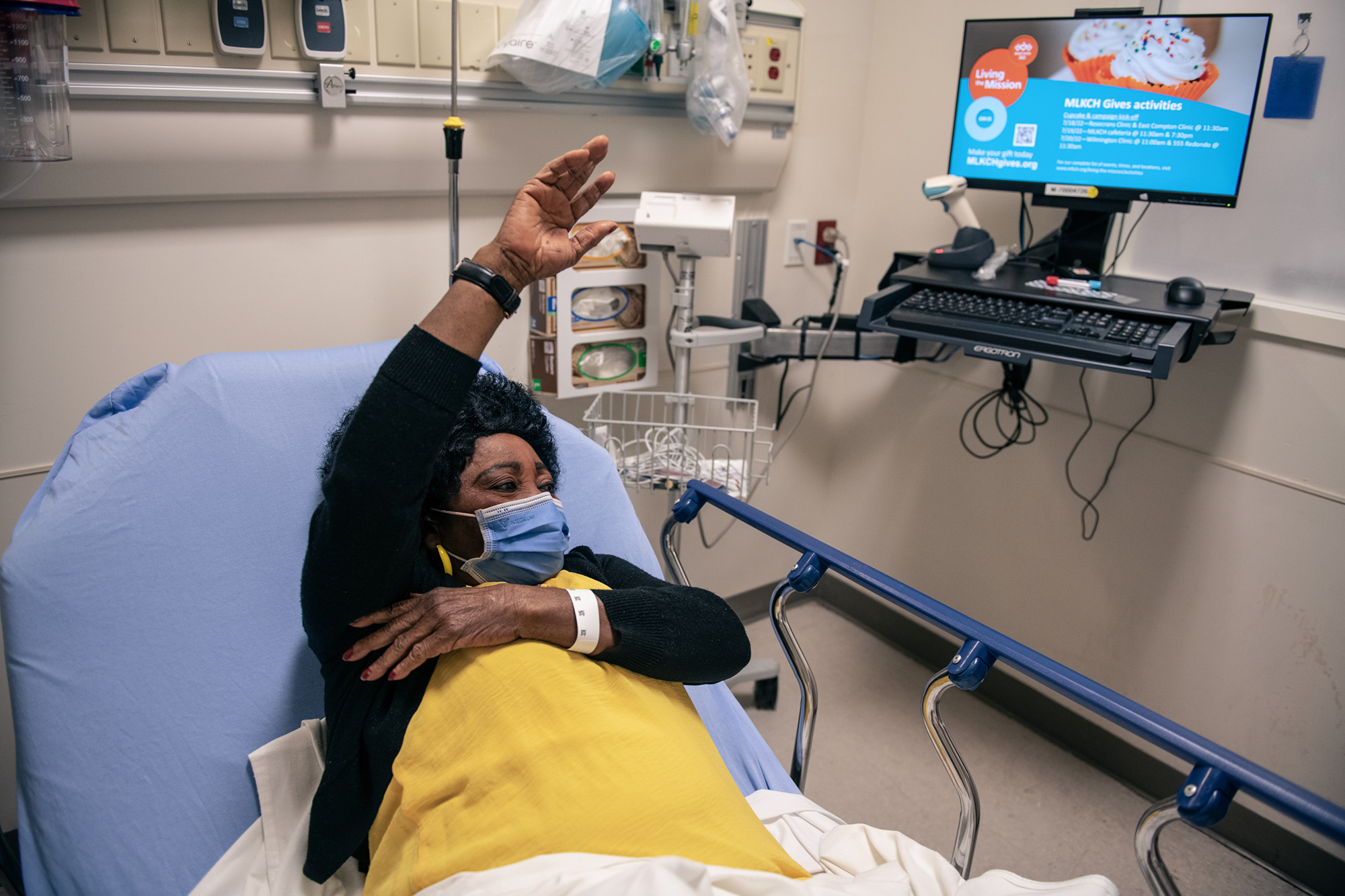 Caroline that lengthens his right hand, which she believes has discomfort due to arthritis. Onyenune, a patient with Medi-Cal and Nigerian, born angelno, took the bus from his home in southern Los Angeles to the Martin Luther King Jr. Hospital in Los Angeles on July 26, 2022.