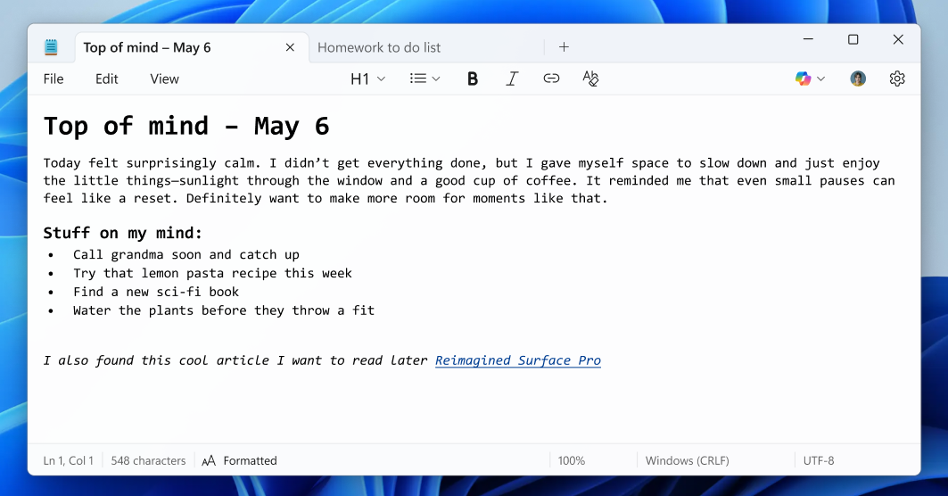 Microsoft adds text format to the Windows Notepad app. The big note The update is available For Canary and Dev Laboratory on Windows 11, it provides a bold and oblique design, along with hyperlinks and even shining support.