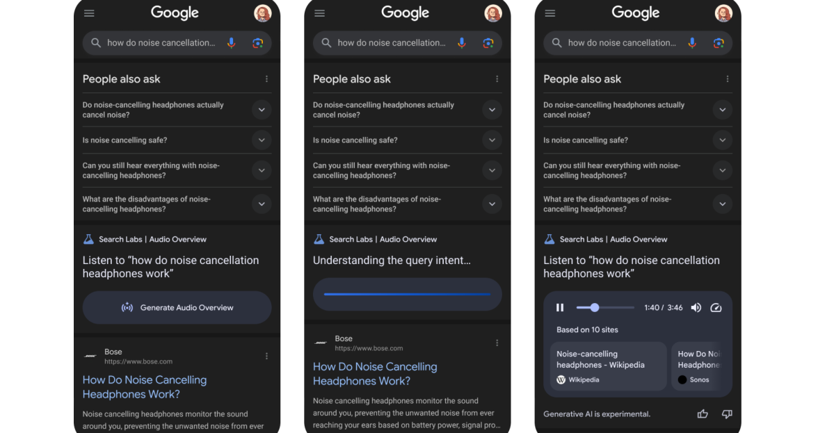 If you are looking for something like, “How do noise canceling headphones work?” , Google will display a button below the unit “also ask people” that says, “Create a voice overview.” Once you click the button, it will take up to 40 seconds to create a sound overview, according to Google.