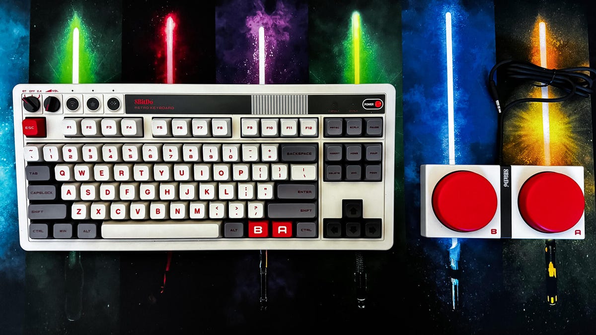 The fun theme is far from the only original thing about these reactionary keyboards. 8bito It creates three different accessories for the keyboards that will put the inner Nerd-Child. There are four super buttons – a group of two comes in the square – each aims to serve as the “A”, “B” or “X” or “Y” keyboard yesterday. It is colored identical to the characteristic and its provision in yellow, green or blue. If you prefer not to move the super buttons, there are two large button “A” and “B” at the bottom of the keyboard that you can use